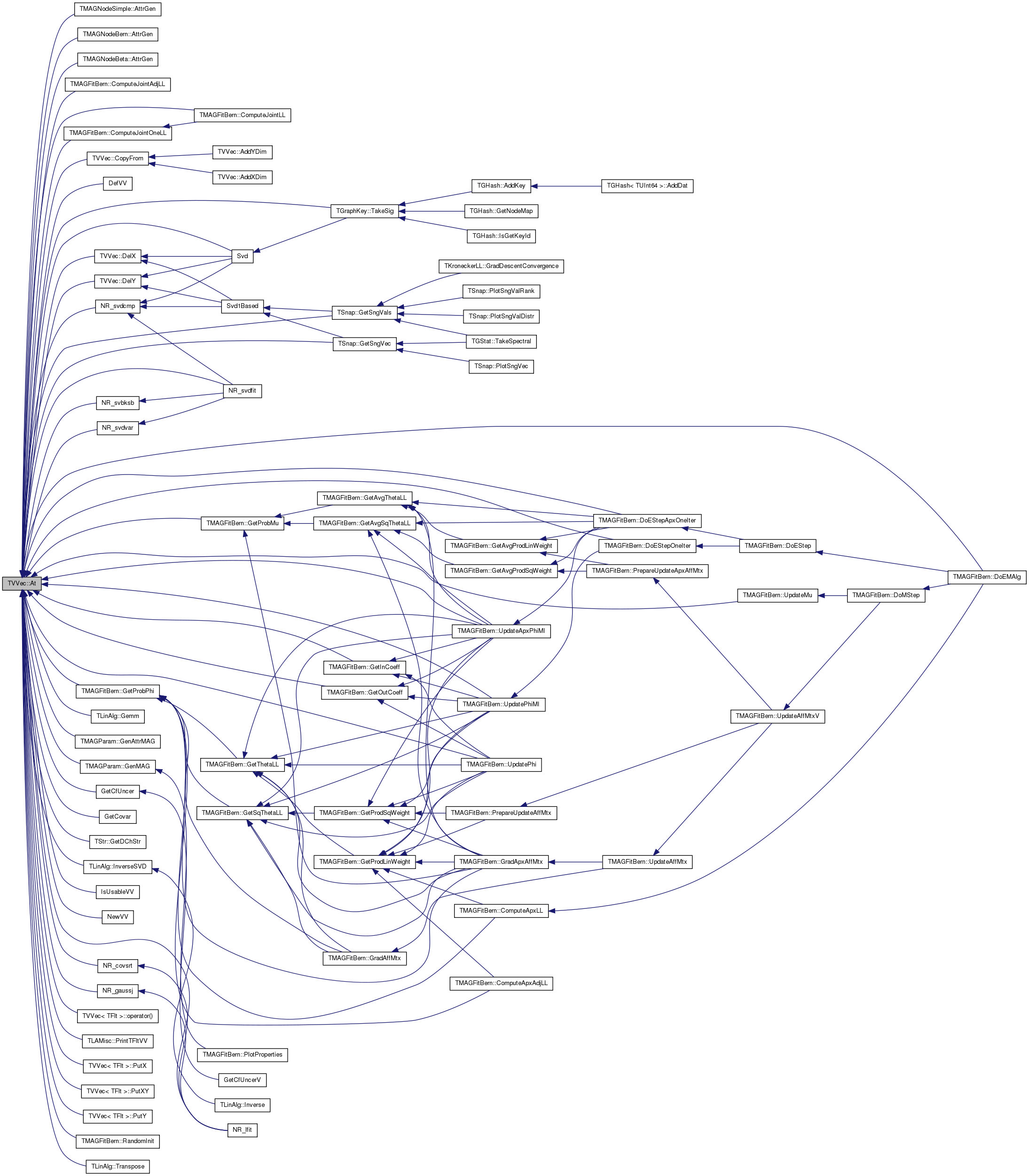 Referenced by TMAGNodeSimple::AttrGen(), TMAGNodeBern::AttrGen(), TMAGNodeBeta::AttrGen(), TMAGFitBern::ComputeJointAdjLL(), TMAGFitBern::ComputeJointLL(), TMAGFitBern::ComputeJointOneLL(), TVVec< TVal >::CopyFrom(), DefVV(), TVVec< TVal >::DelX(), TVVec< TVal >::DelY(), TMAGFitBern::DoEMAlg(), TMAGFitBern::DoEStepApxOneIter(), TMAGFitBern::DoEStepOneIter(), TLinAlg::Gemm(), TMAGParam< TNodeAttr >::GenAttrMAG(), TMAGParam< TNodeAttr >::GenMAG(), GetCfUncer(), GetCovar(), TStr::GetDChStr(), TMAGFitBern::GetInCoeff(), TMAGFitBern::GetOutCoeff(), TMAGFitBern::GetProbMu(), TMAGFitBern::GetProbPhi(), TSnap::GetSngVals(), TSnap::GetSngVec(), TLinAlg::InverseSVD(), IsUsableVV(), NewVV(), NR_covsrt(), NR_gaussj(), NR_lfit(), NR_svbksb(), NR_svdcmp(), NR_svdfit(), NR_svdvar(), TVVec< TFlt >::operator()(), TLAMisc::PrintTFltVV(), TVVec< TFlt >::PutX(), TVVec< TFlt >::PutXY(), TVVec< TFlt >::PutY(), TMAGFitBern::RandomInit(), Svd(), TGraphKey::TakeSig(), TLinAlg::Transpose(), TMAGFitBern::UpdateApxPhiMI(), TMAGFitBern::UpdateMu(), TMAGFitBern::UpdatePhi(), and TMAGFitBern::UpdatePhiMI().