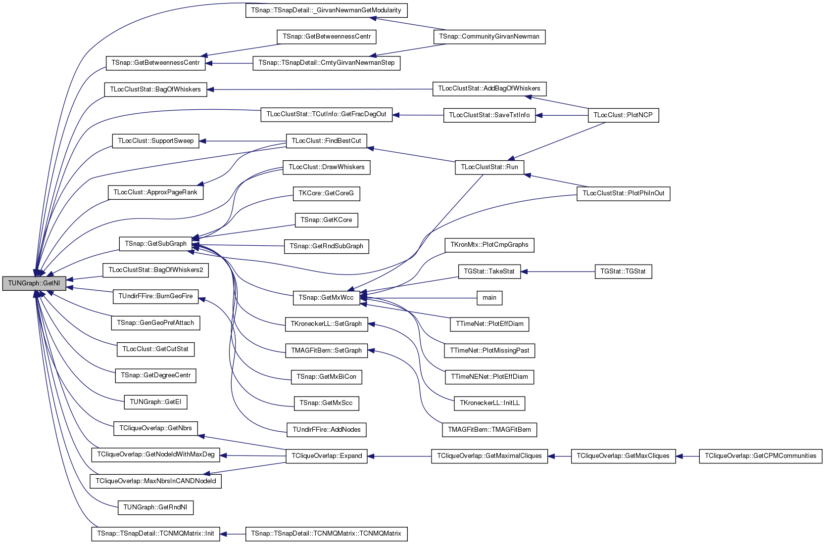 Referenced by TUndirFFire::AddNodes(), TLocClust::ApproxPageRank(), BegEI(), TUNGraphMtx::CheckNodeIds(), TLocClust::DrawWhiskers(), Dump(), Empty(), TAGM::GenAGM(), TSnap::GenRewire(), TSnap::GetArtPoints(), TSnap::GetBetweennessCentr(), TSnap::GetBiCon(), TCliqueOverlap::GetCPMCommunities(), TSnap::GetDegreeCentr(), TSnap::GetEigenVectorCentr(), TSnap::GetEigVec(), TSnap::GetFarnessCentr(), TSnap::GetInvParticipRat(), TCliqueOverlap::GetMaximalCliques(), GetNIdV(), TLocClustStat::ImposeNCP(), TLocClustStat::ParamStr(), TUNGraphMtx::PGetCols(), TUNGraphMtx::PGetRows(), TLocClustStat::PlotBoltzmanCurve(), TTimeNet::PlotCCfOverTm(), TTimeNet::PlotEffDiam(), TSnap::PlotEigValDistr(), TSnap::PlotEigValRank(), TSnap::PlotInvParticipRat(), TTimeNet::PlotMedianDegOverTm(), TLocClustStat::PlotNCP(), TLocClustStat::PlotNCPModul(), TLocClustStat::PlotNCPScatter(), TLocClustStat::PlotNcpTop10(), TLocClustStat::PlotPhiInOut(), TLocClustStat::Run(), TLocClust::SavePajek(), TLocClustStat::SaveTxtInfo(), TKronMomentsFit::Test(), and TUNGraphMtx::TUNGraphMtx().