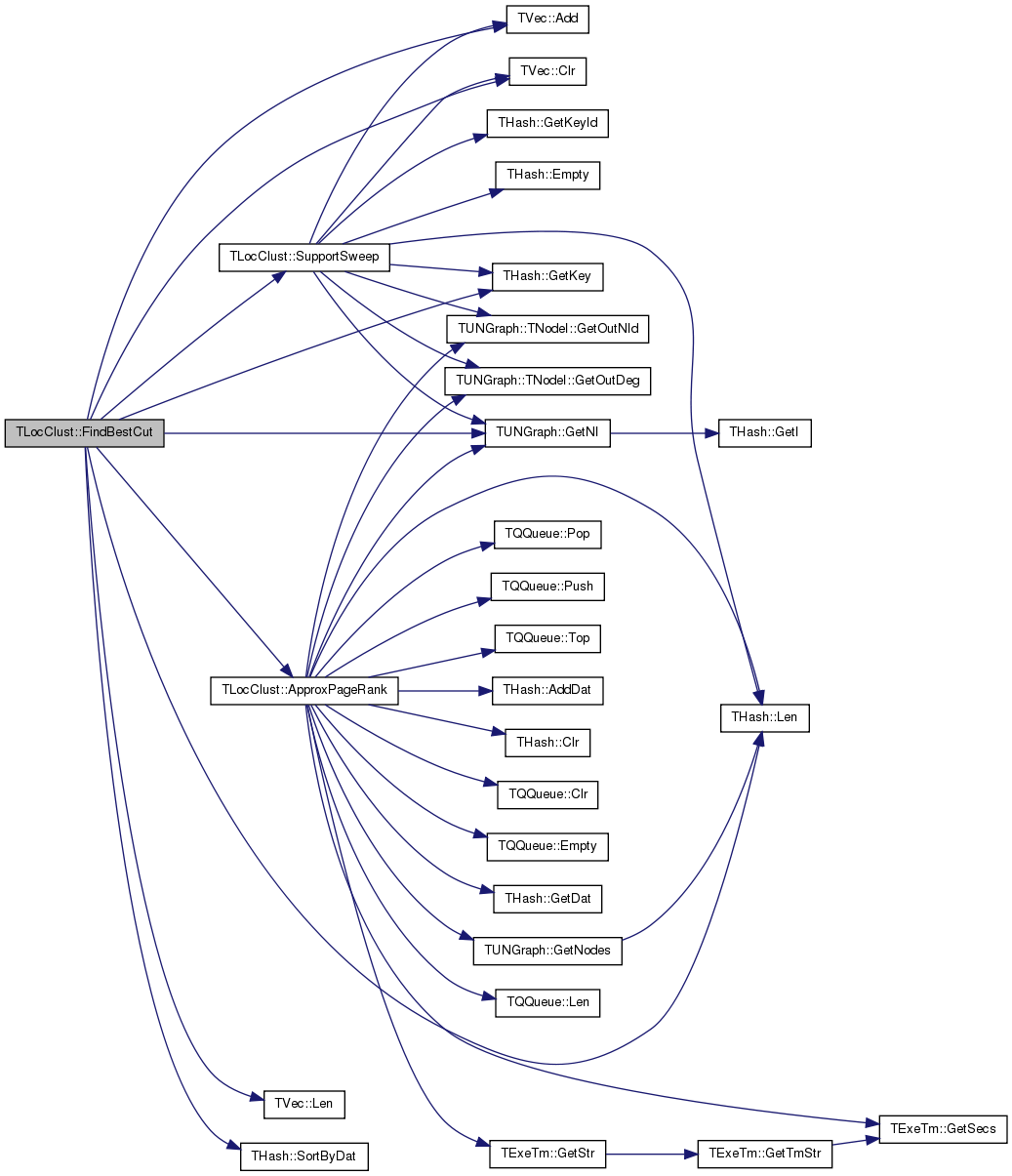 References TUNGraph::BegNI(), BestCut(), BestCutNodes(), TStr::CStr(), TUNGraph::EndNI(), TStr::Fmt(), TUNGraph::GetEdges(), TUNGraph::GetNodes(), TVec< TVal >::GetV(), Graph, NIdV, and SeedNId.