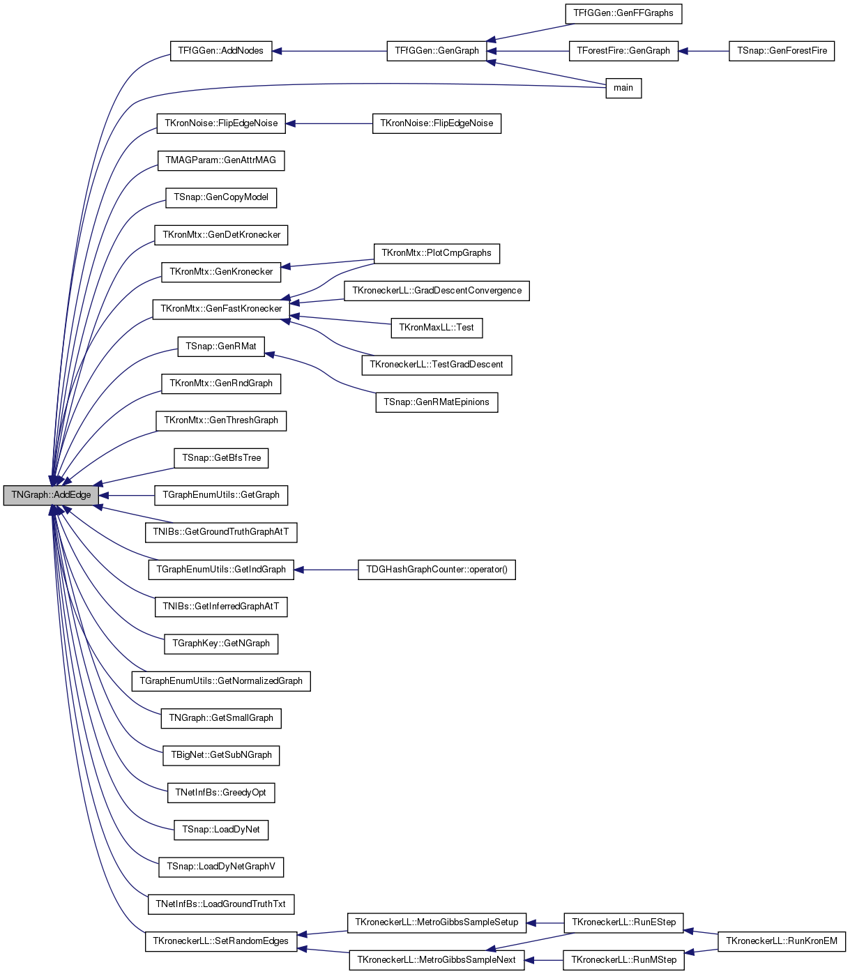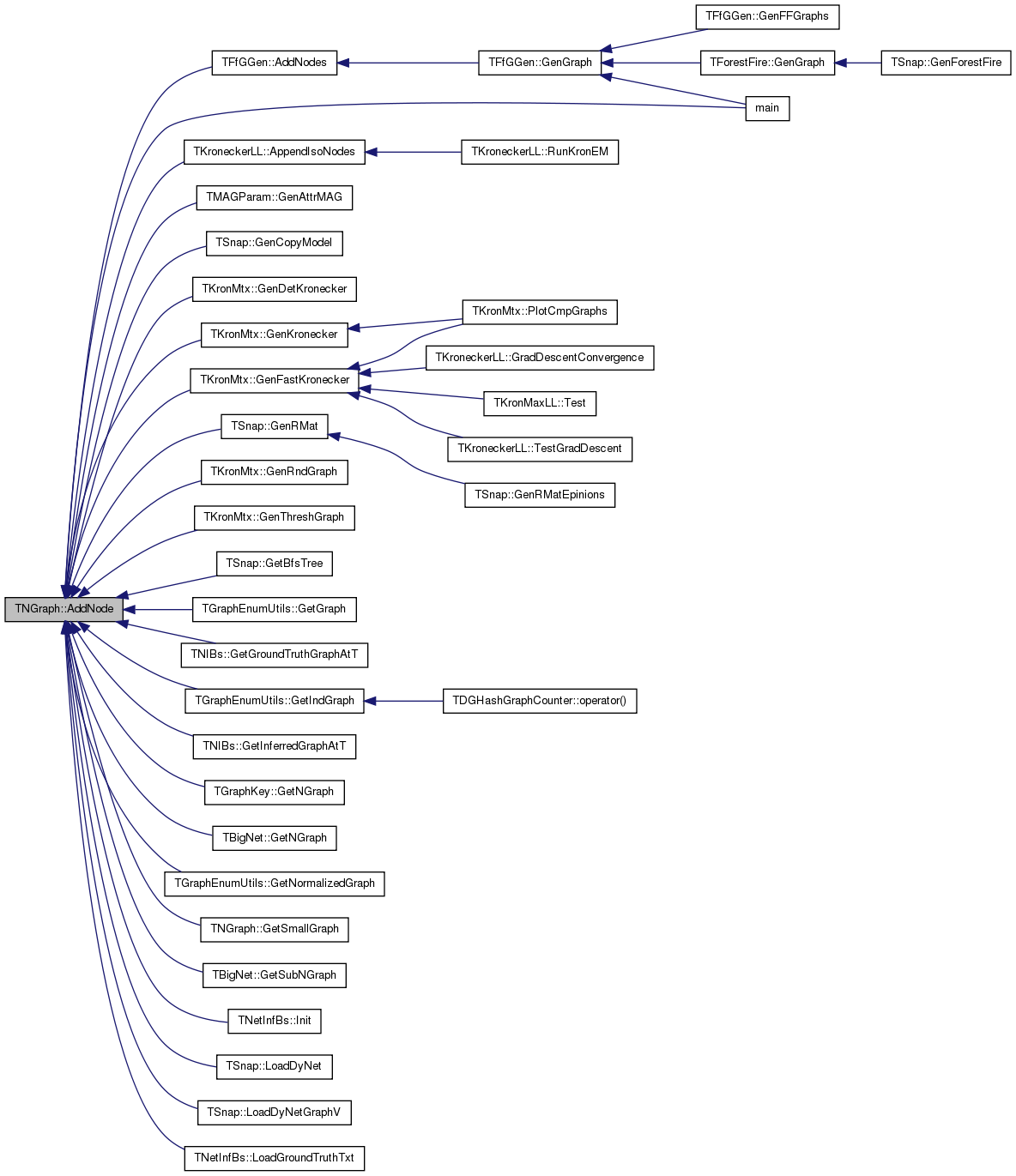 Referenced by TMAGParam< TNodeAttr >::GenAttrMAG(), TSnap::GenCopyModel(), TKronMtx::GenDetKronecker(), TKronMtx::GenFastKronecker(), TKronMtx::GenKronecker(), TSnap::GenRMat(), TKronMtx::GenRndGraph(), TKronMtx::GenThreshGraph(), TSnap::GetBfsTree(), TD34GraphCounter::GetGraph(), TNIBs::GetGroundTruthGraphAtT(), TNIBs::GetInferredGraphAtT(), TGraphEnumUtils::GetIsoGraphs(), TGraphKey::GetNGraph(), TBigNet< TNodeData, IsDir >::GetNGraph(), GetSmallGraph(), TBigNet< TNodeData, IsDir >::GetSubNGraph(), TNetInfBs::Init(), TSnap::LoadDyNet(), TSnap::LoadDyNetGraphV(), TNetInfBs::LoadGroundTruthTxt(), main(), and TDGHashGraphCounter::operator()().