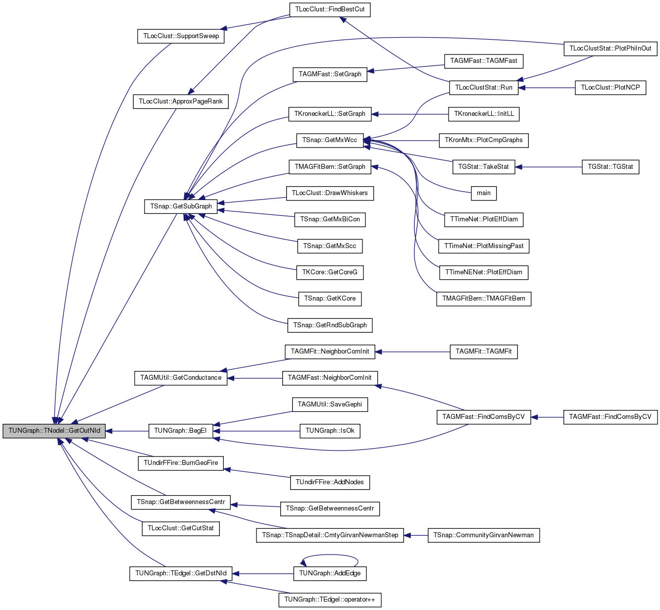 Referenced by TSnap::GetCmnNbrs< PUNGraph >(), TLocClustStat::TCutInfo::GetFracDegOut(), TAGMUtil::GetNbhCom(), TCliqueOverlap::GetNbrs(), TCliqueOverlap::GetNodeIdWithMaxDeg(), TAGMFast::GradientForOneVar(), TAGMFast::GradientForRow(), TAGMFast::HessianForOneVar(), TAGMFit::JoinCom(), TAGMFit::LeaveCom(), TAGMFast::LikelihoodForOneVar(), TAGMFast::LikelihoodForRow(), TCliqueOverlap::MaxNbrsInCANDNodeId(), TAGMFast::MLEGradAscent(), TAGMFast::MLEGradAscentParallel(), TAGMFast::MLENewton(), TAGMFast::NeighborComInit(), TAGMFit::NeighborComInit(), TAGMFast::RandomInit(), TAGMFit::RandomInit(), TAGMFit::SeekJoin(), TAGMFit::SeekLeave(), and TAGMFit::SeekSwitch().