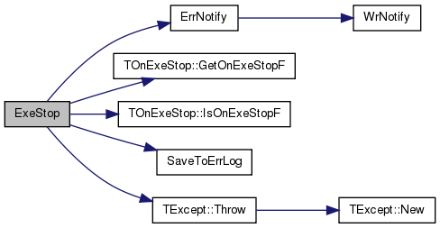 References ErrNotify(), TOnExeStop::GetOnExeStopF(), TOnExeStop::IsOnExeStopF(), SaveToErrLog(), and TExcept::Throw().