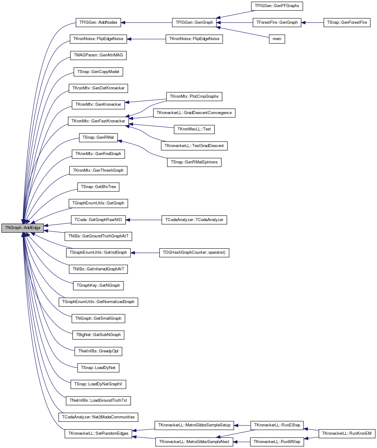 Referenced by TMAGParam< TNodeAttr >::GenAttrMAG(), TSnap::GenCopyModel(), TKronMtx::GenDetKronecker(), TKronMtx::GenFastKronecker(), TKronMtx::GenKronecker(), TSnap::GenRMat(), TKronMtx::GenRndGraph(), TKronMtx::GenThreshGraph(), TSnap::GetBfsTree(), TD34GraphCounter::GetGraph(), TCoda::GetGraphRawNID(), TNIBs::GetGroundTruthGraphAtT(), TNIBs::GetInferredGraphAtT(), TGraphEnumUtils::GetIsoGraphs(), TGraphKey::GetNGraph(), TBigNet< TNodeData, IsDir >::GetNGraph(), GetSmallGraph(), TBigNet< TNodeData, IsDir >::GetSubNGraph(), TNetInfBs::Init(), TSnap::LoadDyNet(), TSnap::LoadDyNetGraphV(), TNetInfBs::LoadGroundTruthTxt(), main(), TCodaAnalyzer::Net2ModeCommunities(), TDGHashGraphCounter::operator()(), TCoda::TCoda(), and TCodaAnalyzer::TCodaAnalyzer().