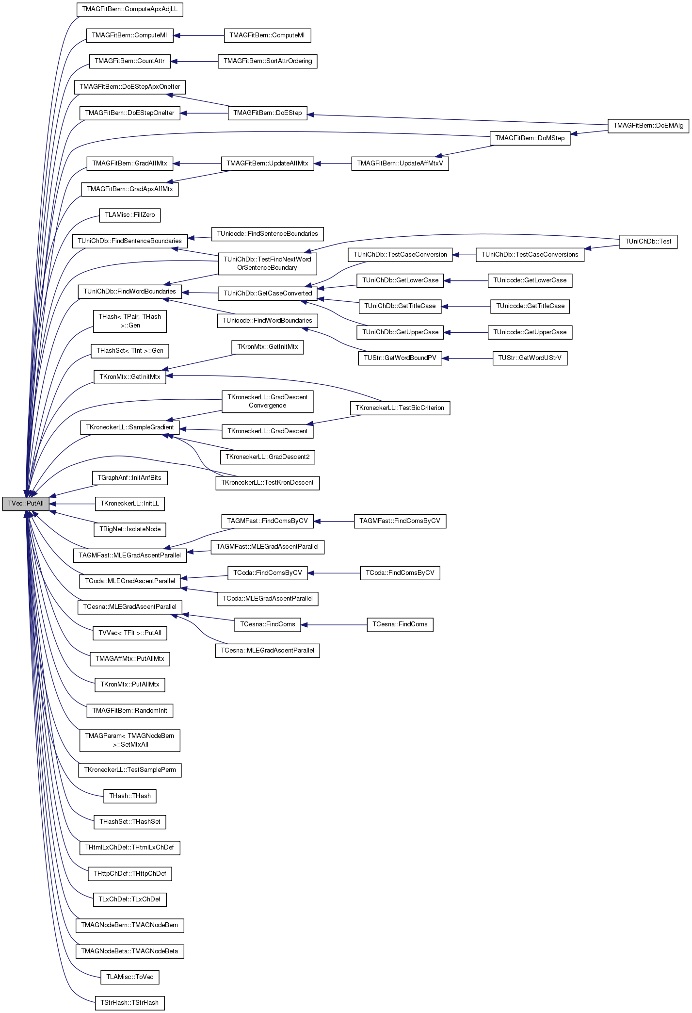 Referenced by TMAGFitBern::ComputeApxAdjLL(), TMAGFitBern::ComputeMI(), TMAGFitBern::CountAttr(), TMAGFitBern::DoEStepApxOneIter(), TMAGFitBern::DoEStepOneIter(), TMAGFitBern::DoMStep(), TLAMisc::FillZero(), TUniChDb::FindSentenceBoundaries(), TUniChDb::FindWordBoundaries(), THash< TPair, THash >::Gen(), THashSet< TInt >::Gen(), TKronMtx::GetInitMtx(), TMAGFitBern::GradAffMtx(), TMAGFitBern::GradApxAffMtx(), TKroneckerLL::GradDescentConvergence(), TGraphAnf< PGraph >::InitAnfBits(), TKroneckerLL::InitLL(), TBigNet< TNodeData, IsDir >::IsolateNode(), TAGMFast::MLEGradAscentParallel(), TCoda::MLEGradAscentParallel(), TCesna::MLEGradAscentParallel(), TVVec< TFlt >::PutAll(), TMAGAffMtx::PutAllMtx(), TKronMtx::PutAllMtx(), TMAGFitBern::RandomInit(), TKroneckerLL::SampleGradient(), TMAGParam< TMAGNodeBern >::SetMtxAll(), TUniChDb::TestFindNextWordOrSentenceBoundary(), TKroneckerLL::TestKronDescent(), TKroneckerLL::TestSamplePerm(), THash< TKey, TDat, THashFunc >::THash(), THashSet< TKey, THashFunc >::THashSet(), THtmlLxChDef::THtmlLxChDef(), THttpChDef::THttpChDef(), TLxChDef::TLxChDef(), TMAGNodeBern::TMAGNodeBern(), TMAGNodeBeta::TMAGNodeBeta(), TLAMisc::ToVec(), and TStrHash< TDat, TStringPool, THashFunc >::TStrHash().