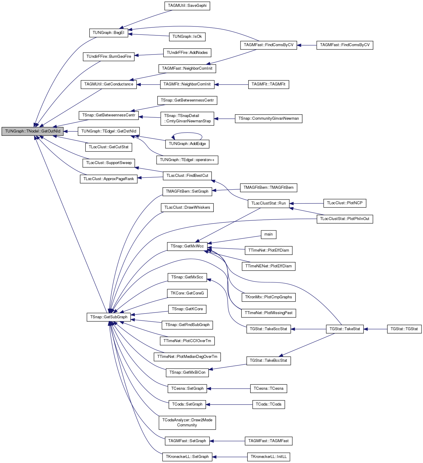 Referenced by TSnap::GetCmnNbrs< PUNGraph >(), TLocClustStat::TCutInfo::GetFracDegOut(), TSnap::GetGroupDegreeCentr(), TAGMUtil::GetNbhCom(), TCliqueOverlap::GetNbrs(), TCliqueOverlap::GetNodeIdWithMaxDeg(), TAGMFast::GradientForOneVar(), TAGMFast::GradientForRow(), TCesna::GradientForRow(), TAGMFast::HessianForOneVar(), TSnap::Infomap(), TSnap::TSnapDetail::InfomapOnlineIncrement(), TSnap::Intersect(), TSnap::Intersect1(), TAGMFit::JoinCom(), TAGMFit::LeaveCom(), TAGMFast::LikelihoodForOneVar(), TAGMFast::LikelihoodForRow(), TCesna::LikelihoodForRow(), TCliqueOverlap::MaxNbrsInCANDNodeId(), TAGMFast::MLEGradAscent(), TAGMFast::MLEGradAscentParallel(), TCesna::MLEGradAscentParallel(), TAGMFast::MLENewton(), TAGMFast::NeighborComInit(), TAGMFit::NeighborComInit(), TCesna::NeighborComInit(), TAGMFast::RandomInit(), TAGMFit::RandomInit(), TCesna::RandomInit(), TAGMFit::SeekJoin(), TAGMFit::SeekLeave(), and TAGMFit::SeekSwitch().