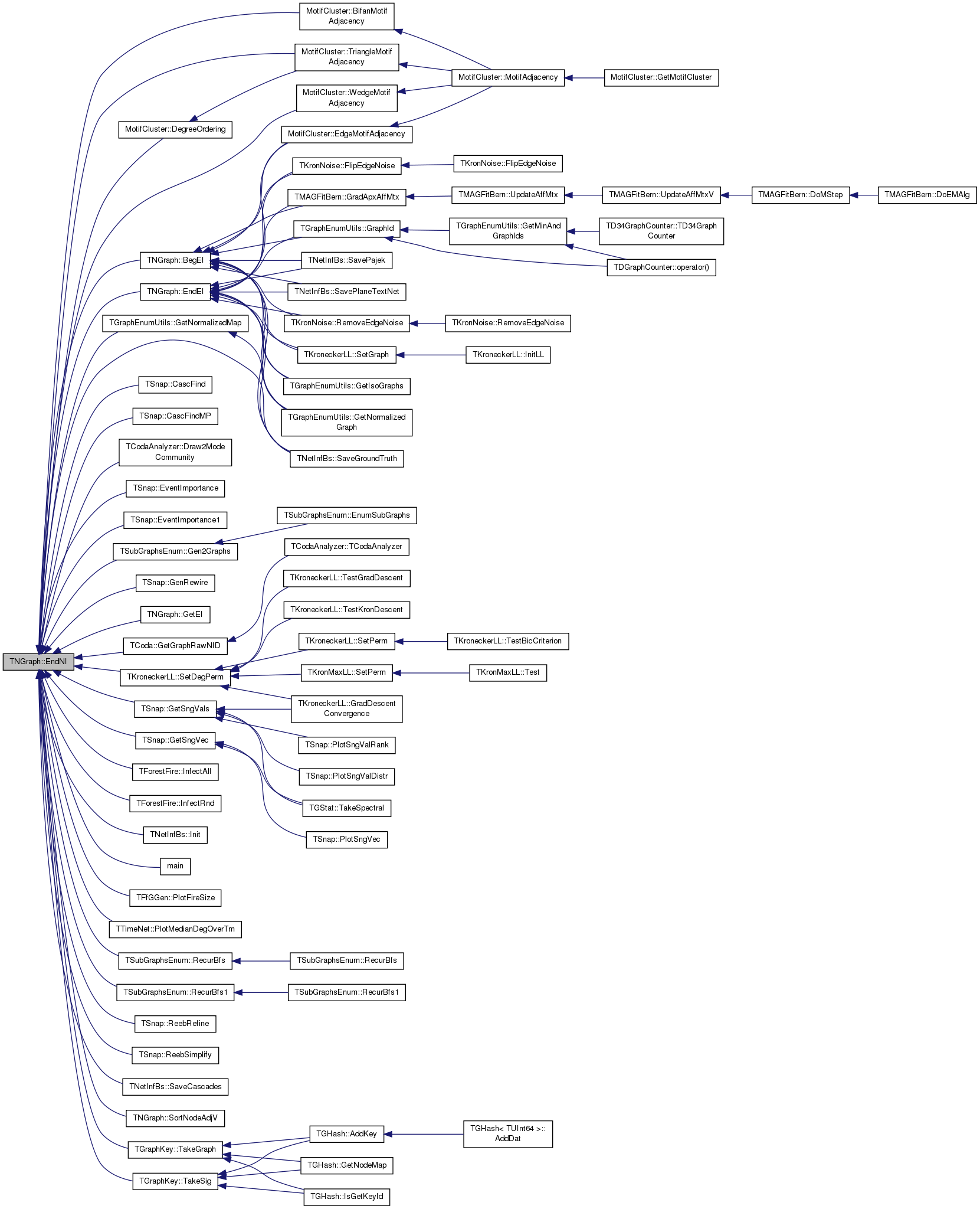 Referenced by AddEdge(), TKroneckerLL::CalcFullApxGraphDLL(), TKroneckerLL::CalcGraphDLL(), TSnap::CascGraphSource(), TSnap::CascGraphTime(), TMAGFitBern::ComputeApxAdjLL(), TMAGFitBern::ComputeApxLL(), TMAGFitBern::ComputeJointAdjLL(), TMAGFitBern::ComputeJointOneLL(), TSnap::TSnapDetail::edgeIntersect(), MotifCluster::EdgeMotifAdjacency(), TKronNoise::FlipEdgeNoise(), TKronMtx::GenFastKronecker(), TSnap::GenRMat(), TNetInfBs::GetBestEdge(), TNetInfBs::GetBound(), TCoda::GetNonEdgePairScores(), TMAGFitBern::GradAffMtx(), TNetInfBs::GreedyOpt(), MotifCluster::IsBidirEdge(), TGraphEnumUtils::IsEdge(), MotifCluster::IsNoEdge(), MotifCluster::IsUnidirEdge(), TCoda::LikelihoodHoldOut(), TKroneckerLL::NodeDLLDelta(), TKroneckerLL::NodeLLDelta(), TKroneckerLL::SetRandomEdges(), TKroneckerLL::SwapNodesLL(), MotifCluster::TriangleMotifAdjacency(), TKroneckerLL::UpdateGraphDLL(), TMAGFitBern::UpdatePhi(), and TMAGFitBern::UpdatePhiMI().