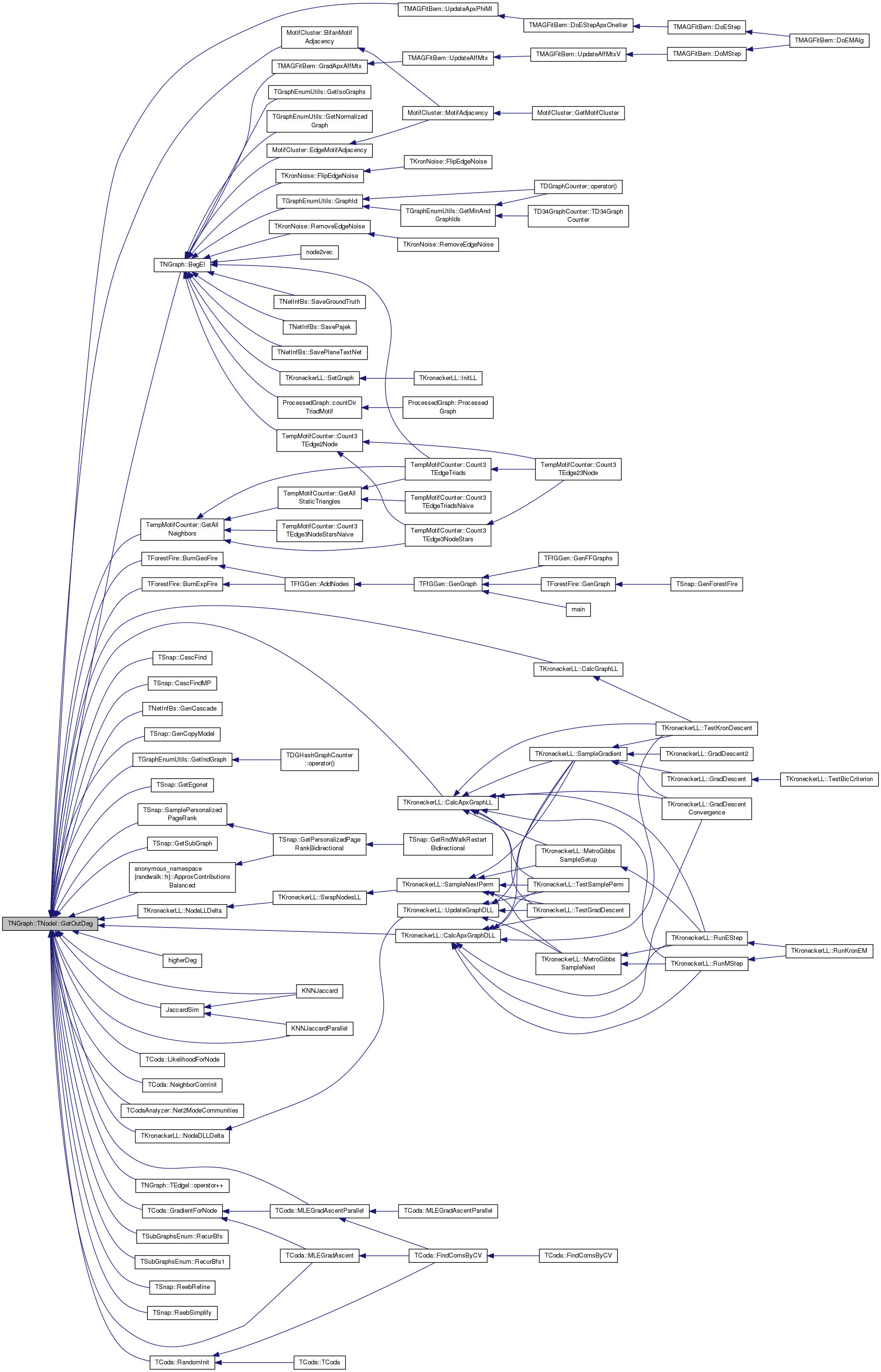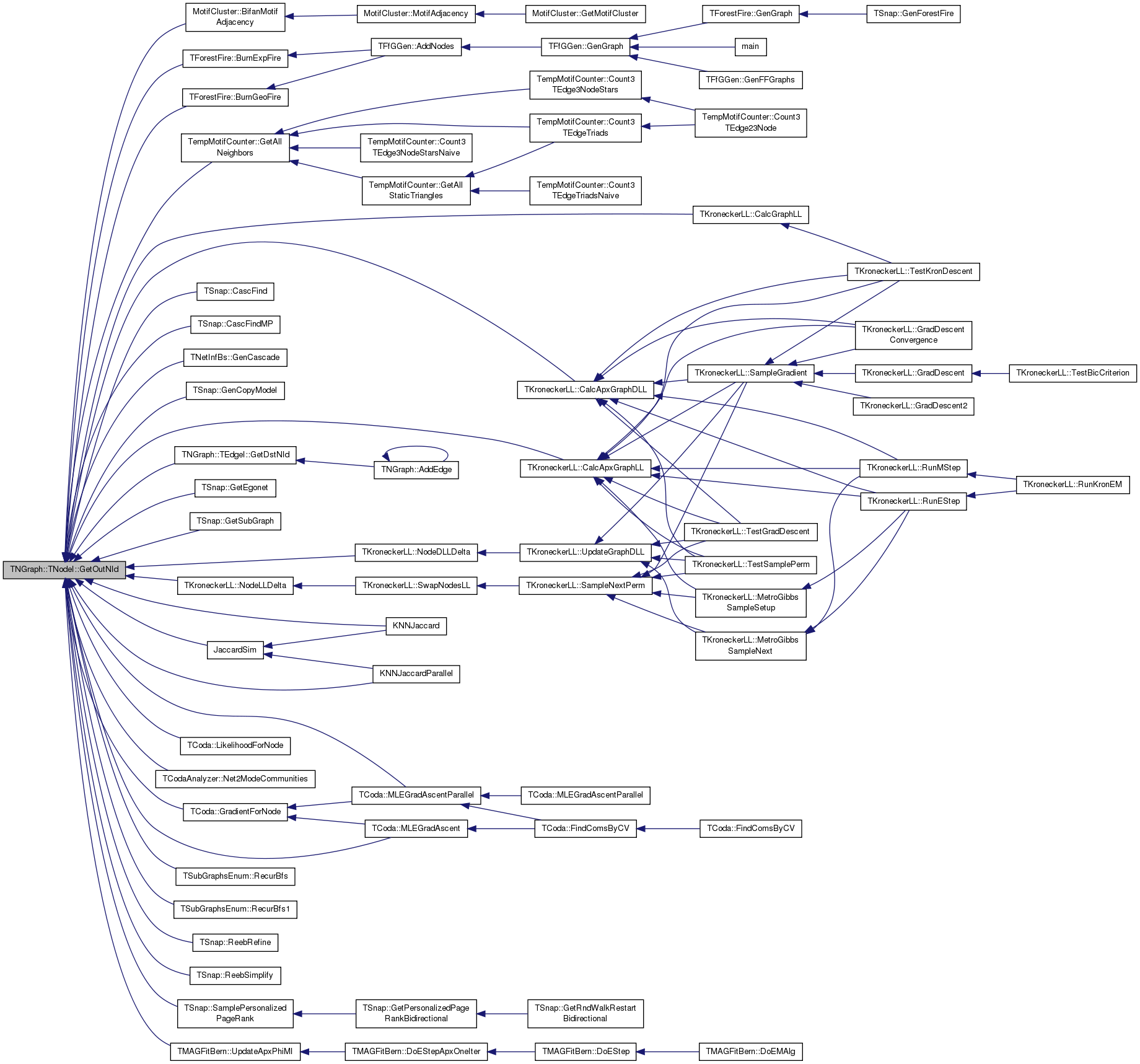 Referenced by MotifCluster::BifanMotifAdjacency(), TForestFire::BurnExpFire(), TForestFire::BurnGeoFire(), TKroneckerLL::CalcApxGraphDLL(), TKroneckerLL::CalcApxGraphLL(), TKroneckerLL::CalcGraphLL(), TSnap::CascFind(), TSnap::CascFindMP(), TNetInfBs::GenCascade(), TSnap::GenCopyModel(), TempMotifCounter::GetAllNeighbors(), TNGraph::TEdgeI::GetDstNId(), TSnap::GetEgonet(), TSnap::GetSubGraph(), TCoda::GradientForNode(), JaccardSim(), KNNJaccard(), KNNJaccardParallel(), TCoda::LikelihoodForNode(), TCoda::MLEGradAscent(), TCoda::MLEGradAscentParallel(), TCodaAnalyzer::Net2ModeCommunities(), TKroneckerLL::NodeDLLDelta(), TKroneckerLL::NodeLLDelta(), TSubGraphsEnum::RecurBfs(), TSubGraphsEnum::RecurBfs1(), TSnap::ReebRefine(), TSnap::ReebSimplify(), TSnap::SamplePersonalizedPageRank(), and TMAGFitBern::UpdateApxPhiMI().