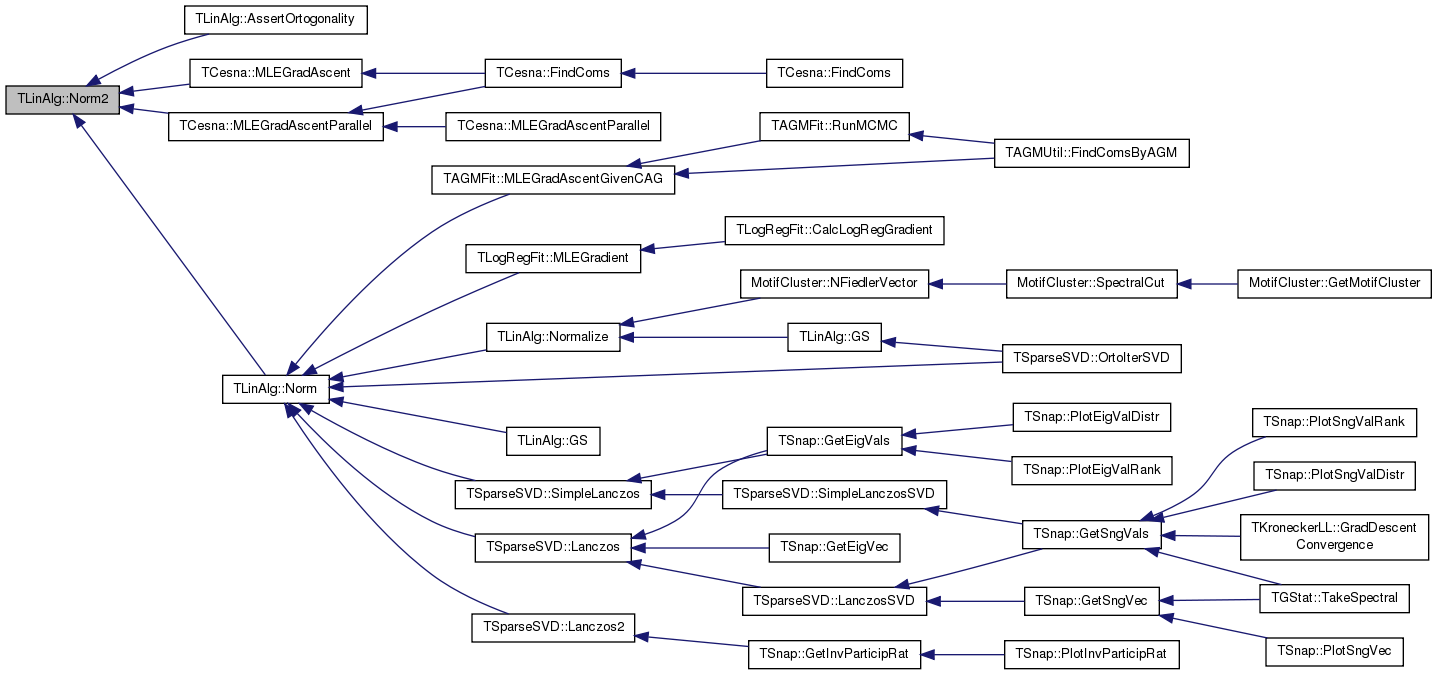 Referenced by AssertOrtogonality(), TLogRegFit::GetStepSizeByLineSearch(), TAGMFit::GetStepSizeByLineSearchForLambda(), TCesna::GetStepSizeByLineSearchForWK(), GS(), TSparseSVD::Lanczos(), TSparseSVD::Lanczos2(), TLogRegFit::MLENewton(), Norm2(), TFullColMatrix::PMultiplyT(), and TSparseSVD::SimpleLanczos().
