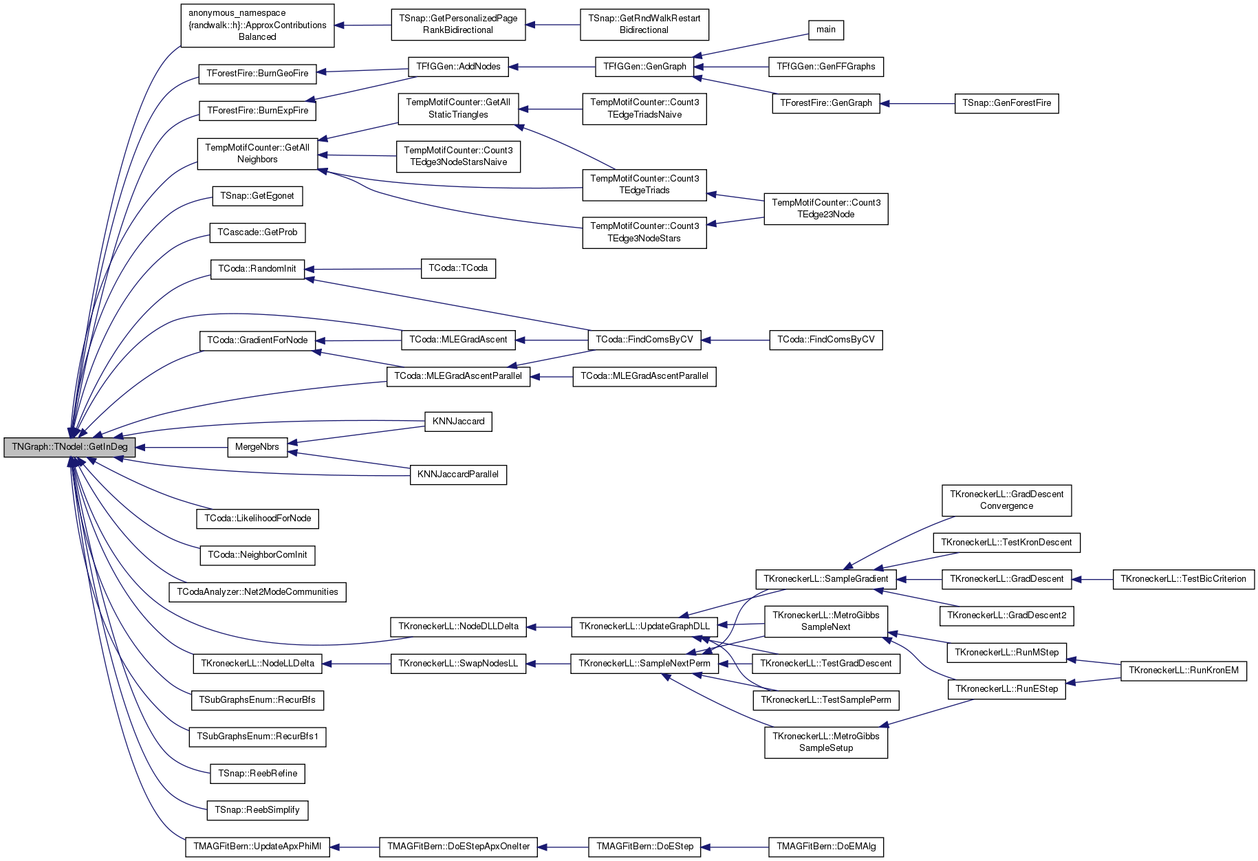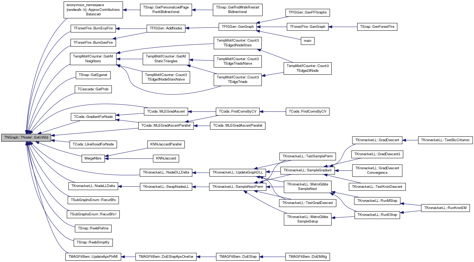 Referenced by MotifCluster::BifanMotifAdjacency(), TForestFire::BurnExpFire(), TForestFire::BurnGeoFire(), TKroneckerLL::CalcApxGraphDLL(), TKroneckerLL::CalcApxGraphLL(), TKroneckerLL::CalcGraphLL(), TSnap::CascFind(), TSnap::CascFindMP(), TNetInfBs::GenCascade(), TSnap::GenCopyModel(), TempMotifCounter::GetAllNeighbors(), TNGraph::TEdgeI::GetDstNId(), TSnap::GetEgonet(), TSnap::GetSubGraph(), TCoda::GradientForNode(), JaccardSim(), KNNJaccard(), KNNJaccardParallel(), TCoda::LikelihoodForNode(), TCoda::MLEGradAscent(), TCoda::MLEGradAscentParallel(), TCodaAnalyzer::Net2ModeCommunities(), TKroneckerLL::NodeDLLDelta(), TKroneckerLL::NodeLLDelta(), TSubGraphsEnum::RecurBfs(), TSubGraphsEnum::RecurBfs1(), TSnap::ReebRefine(), TSnap::ReebSimplify(), TSnap::SamplePersonalizedPageRank(), and TMAGFitBern::UpdateApxPhiMI().