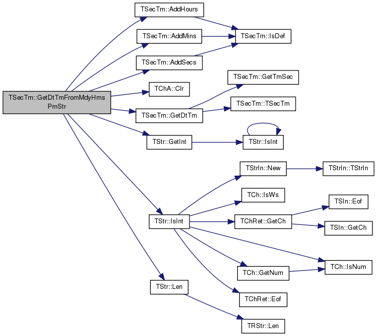 | static TSecTm | GetDtTmFromMdyHmsPmStr (const TStr &MdyHmsPmStr, const char &DateSepCh='/', const char &TimeSepCh=':') |